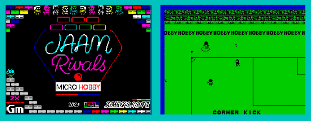 Un juego de fútbol genial, Speccy Soccer Microhobby Edition, que está inspirado en el mítico Sensible Soccer, y por otro lado un aprendiz aventajado del clásico Arkanoid, Jaam Rivals. Y de extra, un Pong discreto pero endiabladamente divertido.