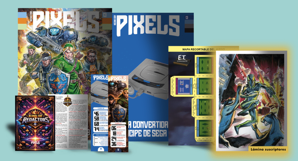 Es más, para que puedas sostener en una conversación que E.T. El Extraterrestre es el peor juego de la historia (o no), vamos a explicarte paso a paso cómo jugarlo, que seguro que no lo sabes todavía. Y encima, comprando la Edición Coleccionista de PIXELS nº13, te llevarás una lámina recortable con el mapa del juego. Para que lo puedas montar y utilizar mientras te echas unas partidas con el cartucho original… o un emulador.